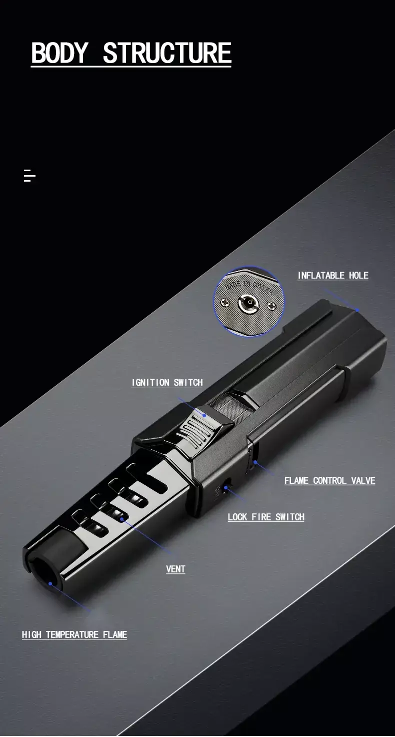 💨 Recarregável com gás butano: prático, econômico e reutilizável.