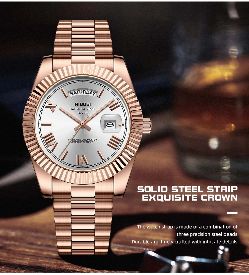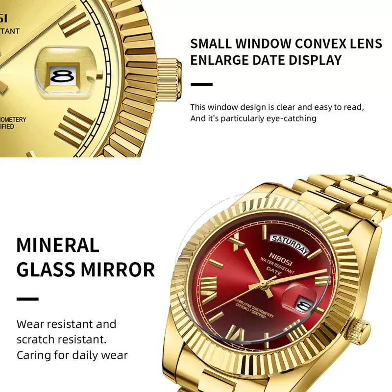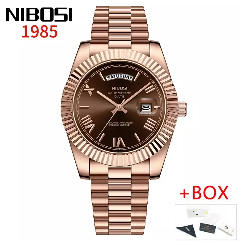 Com o Nibosi, o relógio de marca que une luxo, desempenho e estilo, você marca presença em qualquer ocasião. Sofisticado e durável, ele é o acessório perfeito para quem valoriza classe e pontualidade.